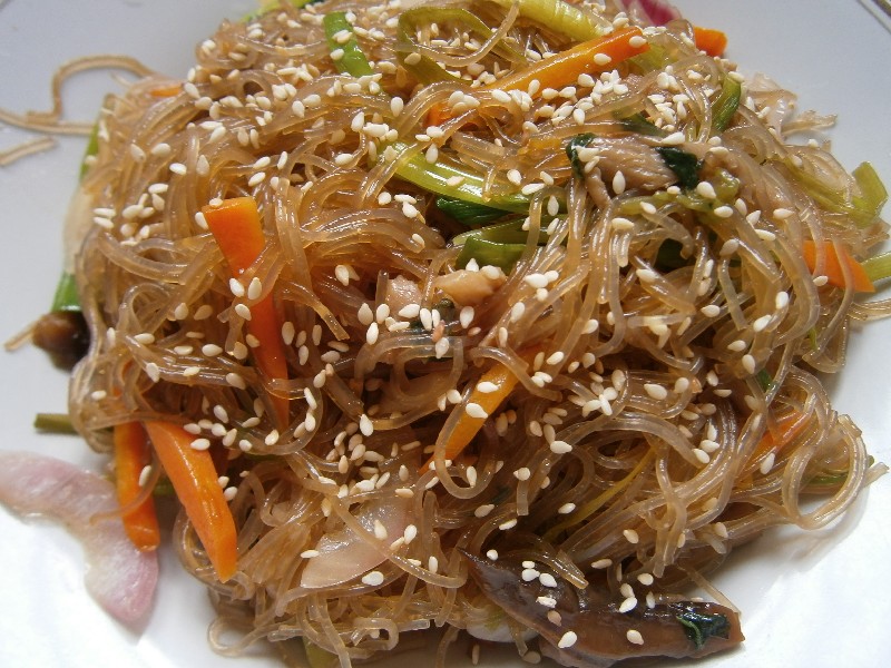 1. It’s funny, but as I said my stir-fried noodles have nothing exceptional, except for the kind of noodles… Ok, the sesame seeds are a coincidence! Not everyone puts sesame seeds on top of their noodles 😉 I also love the Korean noodles (the sweet potato starch noodles??? They are irresistible!)