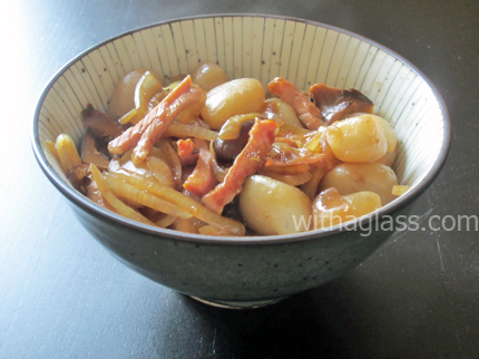 Congratulations on your success in making a flavorful dish using tama konnyaku!! As always, I enjoy reading about your creativity in using a Japanese ingredient in a Western-style dish. Combining konnyaku with bacon is not such a crazy idea, though, because konnyaku is neutral in flavor (although you may find it smelly when you open the pack) and is capable of absorbing flavor from other ingredients. When you think of oden, where various ingredients are put in a pot of dashi, you will see what I mean.